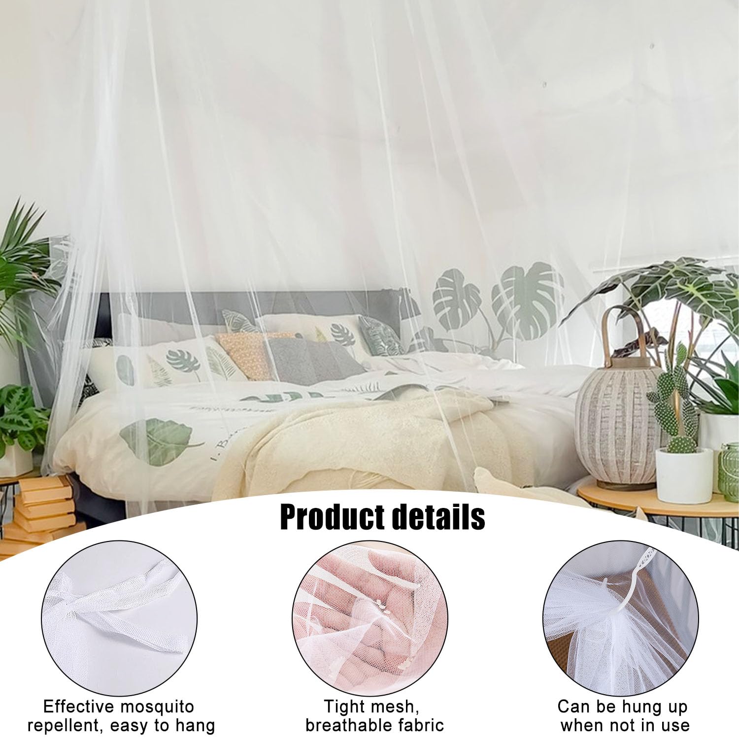 Dormi senza punture con questa zanzariera matrimoniale! Misura 200x200x180 cm, è in poliestere a maglie fittissime che blocca zanzare e insetti ma lascia passare l'aria. Facilissima da usare: appendila con le corde incluse (senza bisogno di ganci) e regola l'altezza. Leggera, pieghevole e portatile, è perfetta per la camera da letto, il giardino, il campeggio o i viaggi. Include tutto l'occorrente per una notte di sonno tranquillo, ovunque tu sia.
